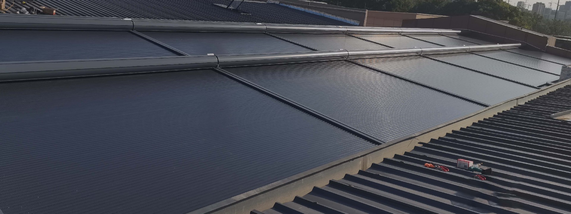卷軸式方案,面料運行方向與原有結構貼合度高,最大程度保持原有屋面結構美觀